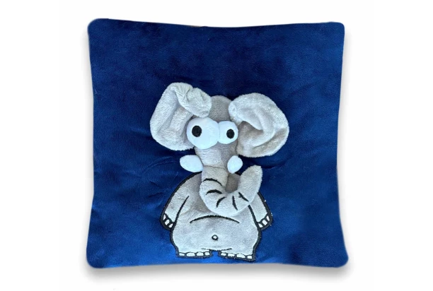 Mäkučký vankúšik s roztomilým 3D plyšovým slonom, ktorý vykukuje von z vankúša, je perfektný doplnok do detskej izby. Tento modrý dekoračný vankúš s rozmermi 25×25 cm vykúzli úsmev na tvári každého dieťaťa a stane sa skvelým spoločníkom na hranie aj maznanie.