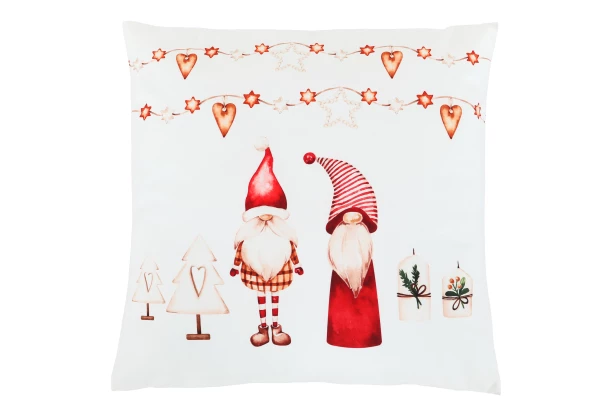 Roztomilý vianočný vankúš so škriatkami s rozmerom 45×45 cm je skvelým doplnkom do obývačky, spálne i detskej izby. Svojím hravým motívom škriatkov v čiapkach s dlhými fúzmi vnesie do interiéru kúzelnú a útulnú sviatočnú atmosféru. Dekoračný vankúš je vyrobený z hebkého polyesteru s jemným zamatovým vzhľadom, takže je nielen krásny na pohľad, ale aj príjemný na dotyk.