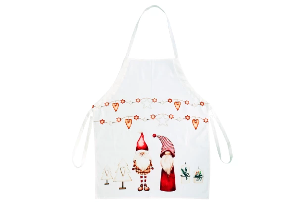 Kuchynská zástera Vianočné škriatkovia, biela