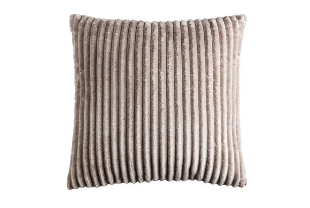Luxusný dekoračný vankúš z mäkkého polyesteru s výraznou rebrovanou štruktúrou, ktorá vytvára jedinečný 3D efekt, dodá vášmu interiéru elegantný a moderný vzhľad. Dostupný v štýlovej šedohnedej farbe o rozmere 45×45 cm.
