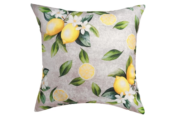Dekoračný vankúš o rozmere 45×45 cm dodá vášmu nábytku nádych stredomorského štýlu. Je vyrobený z polyesteru, ktorý je vodoodpudivý a preto sa ideálne hodí na použitie vonku. Jeho svieži citrónový vzor rozžiari váš vonkajší priestor slnečnou atmosférou a prázdninovou pohodou, zatiaľ čo mäkké prevedenie zaistí maximálny komfort pri sedení.