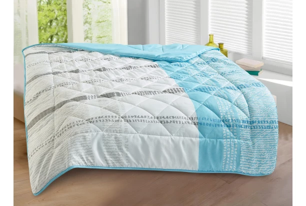 Ľahká a priedušná prešívaná prikrývka o rozmere 140×200 cm v modro-bielej farbe ideálna pre letné mesiace.