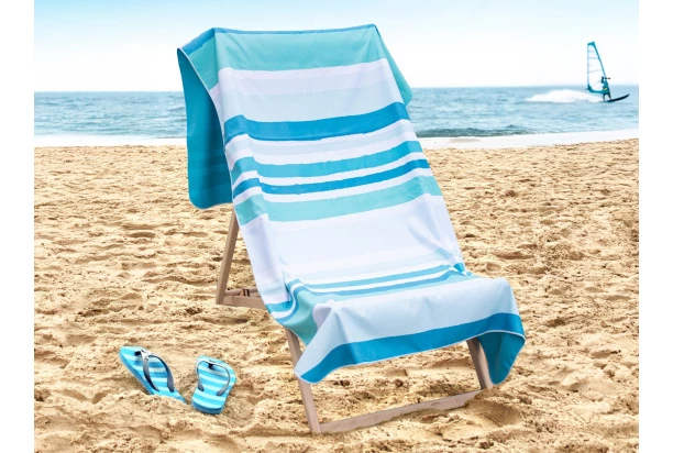 Obojstranná osuška v elegantnej bielo-tyrkysovej kombinácii prináša štýl a pohodlie kamkoľvek ju vezmete. S rozmermi 90×180 cm poskytuje dostatok priestoru pre príjemné leňošenie na pláži alebo pri bazéne. Vďaka rýchloschnúcemu materiálu je nielen ľahká a skladná, ale aj príjemná na dotyk a ľahko udržiavateľná. Moderný pruhovaný vzor dodáva uteráku letný svieži šmrnc.
