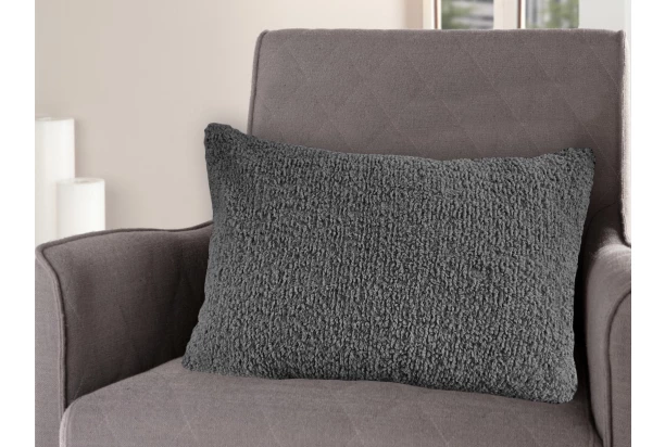 Štýlový dekoračný vankúš o rozmere 50×70 cm v antracitovej farbe ozdobí gauč a poskytne pohodlie.