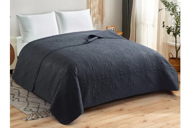 Prikrývka na posteľ 220×240 cm je nielen štýlový, ale aj praktický doplnok do každej domácnosti. Prikrývka v čiernej farbe dodá spálni nádych elegancie a skvele doplní akýkoľvek interiér. Prikrývka je zdobená jemným, ale bohatým reliéfnym ornamentálnym vzorom, ktorý dodáva látke hĺbku a luxusnú textúru. Prikrývka je ideálna nielen na posteľ, ale aj ako dekoratívny doplnok na pohovku.