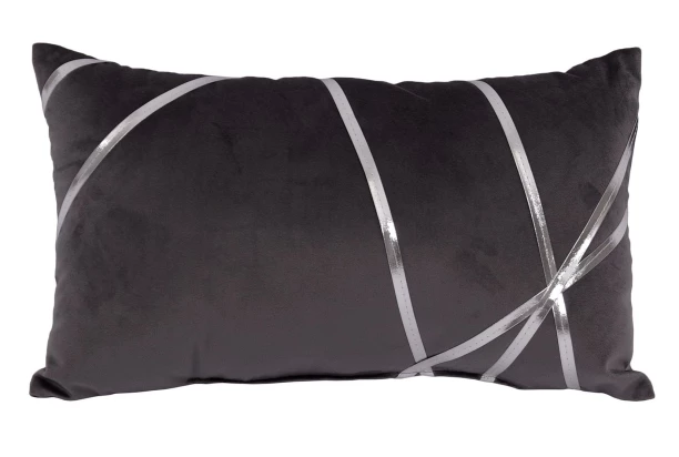 Dekoračný vankúš 30×50 cm v antracitovom prevedení so štýlovými pruhmi v lesklej farbe dodá Vašej obývačke či spálni nádych luxusu.