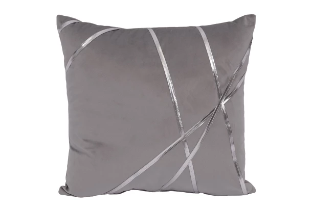 Dekoračný vankúš 45×45 cm v striebornom prevedení so štýlovými pruhmi v lesklej farbe dodá Vašej obývačke či spálni nádych luxusu.