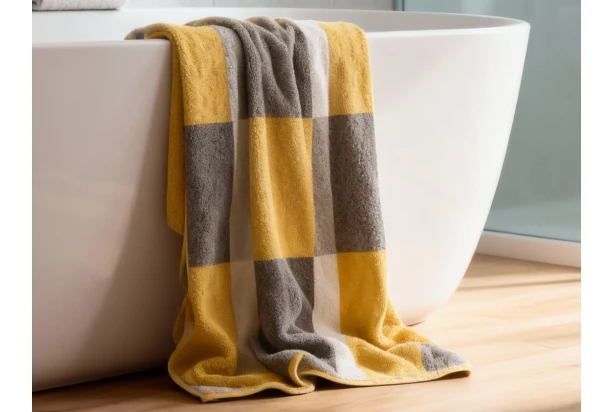 Froté uterák s moderným kockovaným vzorom v žltej farbe bude vašu pokožku dokonale rozmaznávať každý deň. Rozmer 50×100 cm.