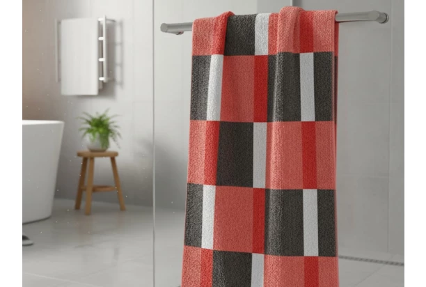 Froté osuška s moderným kockovaným vzorom v koralovej farbe bude vašu pokožku dokonale rozmaznávať každý deň. Rozmer 70×140 cm.