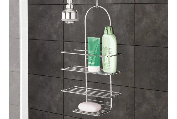 Trojposchodová závesná polica do sprchovacieho kúta je ideálnym riešením pre každého, kto hľadá poriadok v kúpeľni bez nutnosti vŕtania do obkladov. Regál ponúka dostatočný priestor pre všetku Vašu kozmetiku od šampónov až po mydlá. Exkluzívna povrchová úprava chrometherm je antistatická, odolná voči hrdzi, ľahko sa udržuje.