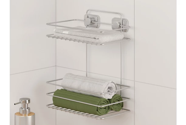 Praktický závesný hlboký regál na umývadlo, do sprchy alebo vane je ideálnym riešením pre prehľadnú organizáciu v kúpeľni. Vďaka kompaktným rozmerom a dvojposchodovému prevedeniu polica šetrí miesto a zároveň udržuje všetko potrebné na dosah ruky. Špeciálna povrchová úprava chrometherm zaisťuje antistatické vlastnosti, vysokú odolnosť proti korózii a zároveň uľahčuje údržbu.