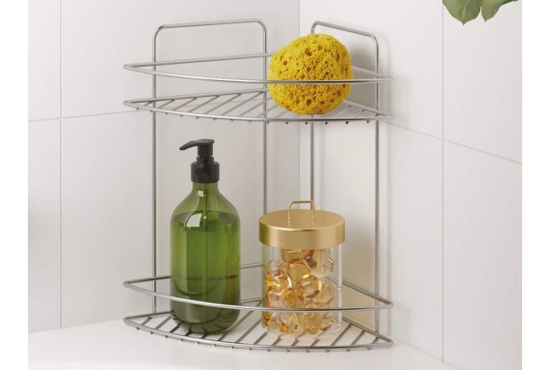 Praktická voľne stojaca rohová polička k umývadlu, na vaňu alebo napríklad k drezu, je ideálnym riešením pre prehľadnú organizáciu v kúpeľni aj kuchyni. Vďaka kompaktným rozmerom a dvojposchodovému prevedeniu šetrí miesto a zároveň udržuje všetko potrebné na dosah ruky. Špeciálna povrchová úprava chrometherm zaisťuje antistatické vlastnosti, vysokú odolnosť proti korózii a zároveň uľahčuje údržbu. Odkladaciu policu je možné voľne postaviť či zavesiť na hladký povrch.