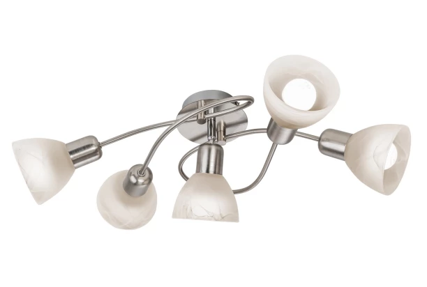 Moderné stropné osvetlenie zo série Daytona je vyrobené z kovu a bieleného alabastrového skla. Variant s 5 bodovými svietidlami. Elegantný dizajn vhodný do každého bytu.