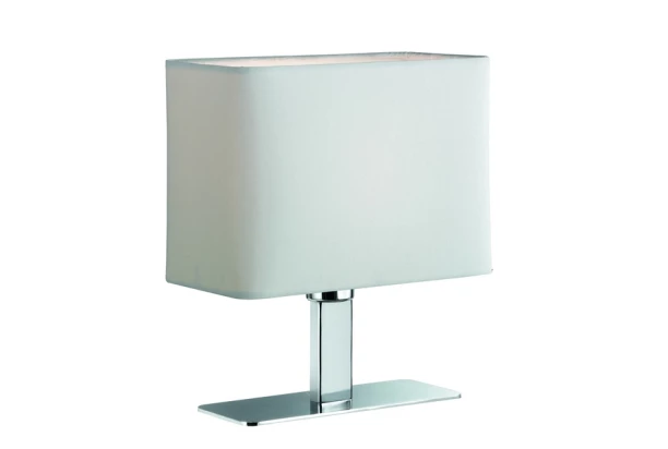 Elegantná stolná lampa s bielym odtieňom má stabilnú chrómovanú kovovú konštrukciu. Sú univerzálne vhodné pre moderne i klasicky zariadené domácnosti.