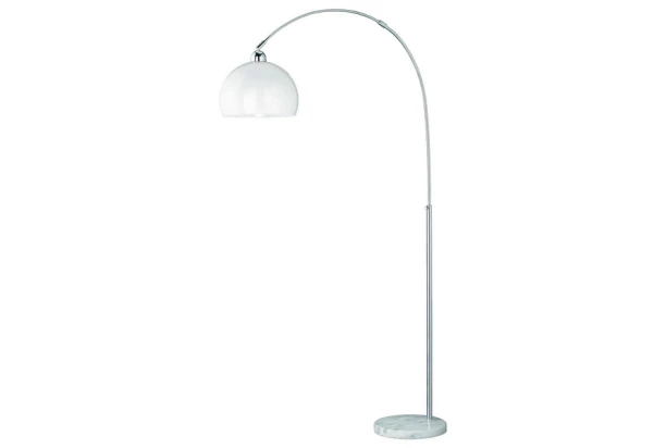 Obľúbená stojacia lampa má na okrúhlej kovovej tyči biele tienidlo, ktorý môžete ľahko polohovať.