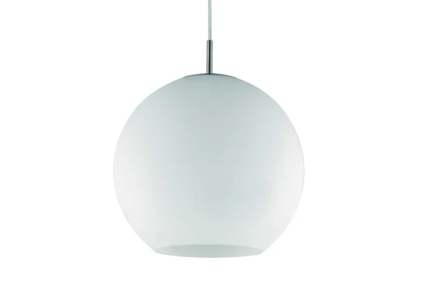 Luster sa zaguľateným tienidlom z bieleho skla vydáva príjemné svetlo a hodí sa do moderného i klasicky zariadeného bytu.