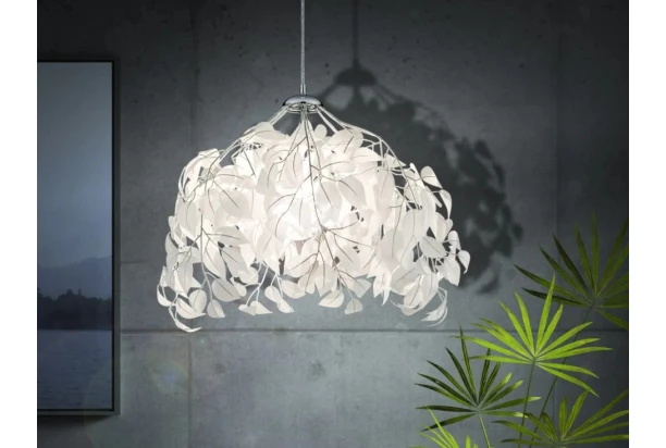 Pôsobivý luster z exkluzívnej kolekcie Leave má tienidlo imitujúce popínavú rastlinu a v interiéri vyzerá úplne fantasticky.