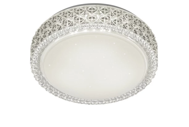 Stropné osvetlenie LED vyrobené z imitácie číreho skla a bieleho skla, ktorého povrch sa po osvetlení jemne leskne. Osvetlenie vytvára luxusný dojem.