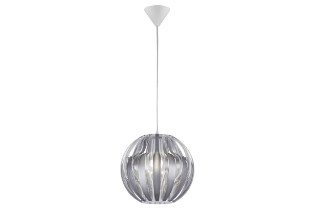 Luster s elegantným dizajnom vytvára zaujímavý efekt v každej miestnosti. Plastové tienidlo s priemerom 30 cm v strieborno-čírej farbe dodáva závesnej lampe moderný vzhľad, ktorý sa dá ľahko začleniť do mnohých štýlov zariadenia.