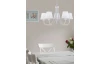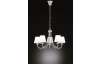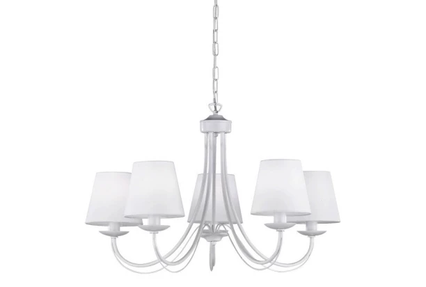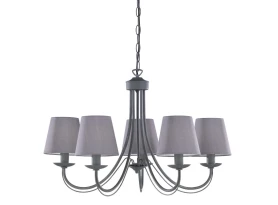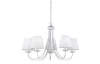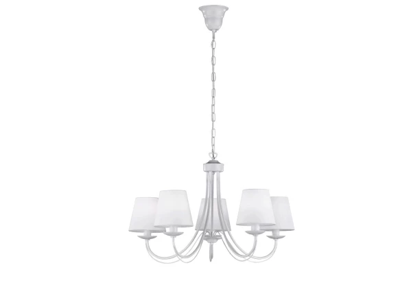 Elegantný luster z kovu v kombinácii s bielymi látkovými tienidlami je možné dobre začleniť do klasicky aj moderne zariadeného interiéru. Závesná stropná lampa s 5 svietidlami ,dodá Vašej obývacej izbe, spálni alebo kuchyni zvláštny šmrnc. Priemer 70 cm.