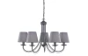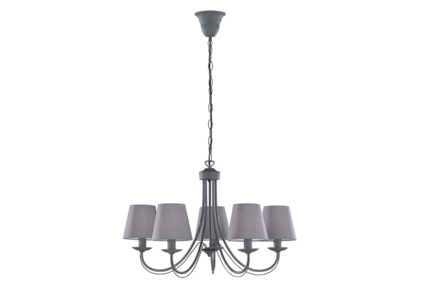 Elegantný luster z kovu vo farbe betónu v kombinácii so šedými látkovými tienidlami je možné dobre začleniť do klasicky aj moderne zariadeného interiéru. Závesná stropná lampa s 5 svietidlami, dodá Vašej obývacej izbe, spálni alebo kuchyni zvláštny šmrnc. Priemer 66 cm.