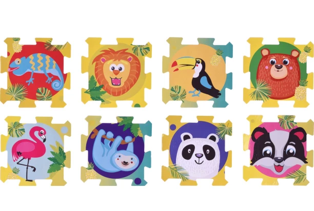 Penové puzzle obsahujú 8 veľkých mäkkých farebných častí s roztomilými zvieratkami. Skladanie je nielen zábavné, ale taktiež pomáha deťom učiť sa farby a tvary. Je možné s nimi vytvoriť hraciu plochu do detských izbičiek a všade tam, kde sa deti hrajú.