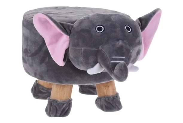 Originálna detská stolička so 4 drevenými nohami a roztomilým zvieracím plyšovým poťahom v šedej farbe sa stane jedinečným doplnkom každej detskej izby a urobí radosť všetkým dievčatám aj chlapcom. Útulný taburet v tvare slona skvele poslúži ako pohodlný sedák, podnožka alebo ako dekorácia.