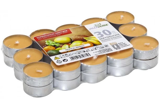 Balenie čajových sviečok s vôňou tropického manga ,obsahuje 30 kusov, ktoré krásne prevoňajú Váš domov.