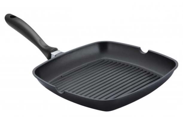 Vysoko kvalitná profesionálna hliníková panvica s profilovaným dnom pre grilovanie je vybavená veľmi odolným nepriľnavým povrchom, ktorý poskytuje vynikajúce vlastnosti pre smaženie na minimálnom množstve tuku alebo bez neho. Panvica má na oboch stranách praktické výlevky na olej. Rozmer 28×28 cm.