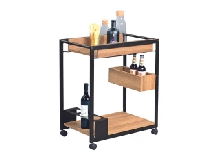 Servírovací stolík so šikovnými priehradkami na fľaše nahradia bar a oslnia kamarátov, ktorí k nemu prídu na futbal alebo partičku kariet. Kombinácia dreva a tmavého kovu je moderná a nadčasová. Vďaka kolieskam bude stolík vždy na správnom mieste.