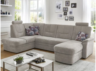 Sedacia súprava Relaxness, tvar U, svetlo šedá látka, bez funkcií