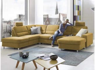 Sedacia súprava Pongau, tvar U, horčicovo žltá látka, s funkciami