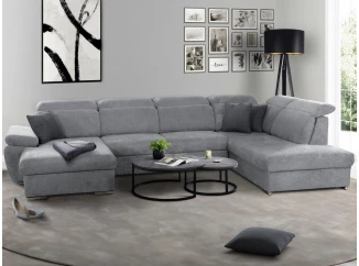 Rohová sedacia súprava Malaga, svetlo šedá látka, bez funkcí