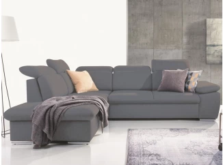 Rohová sedacia súprava Gisele, stredne šedá látka, ľavý roh
