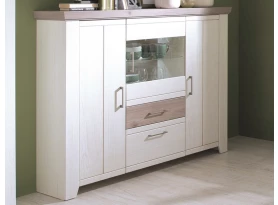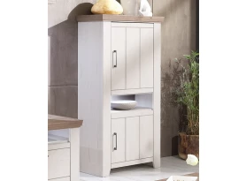 Vysoká komoda Cruz 143 cm, bielená pínia/šedý dub