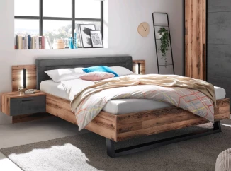 Posteľ s nočnými stolíkmi Sarnia 180x200 cm, zrubová doska/tmavý betón